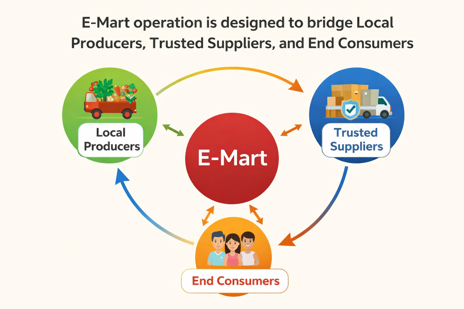 E-Mart operation is designed to bridge local producers, trusted suppliers, and end consumers through a modern, transparent, and user-friendly platform. By combining local market understanding with global business practices, AMISCO INTERNATIONAL aims to redefine how online commerce contributes to national economic growth.